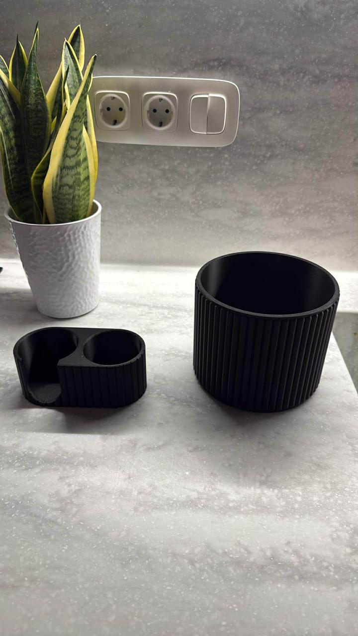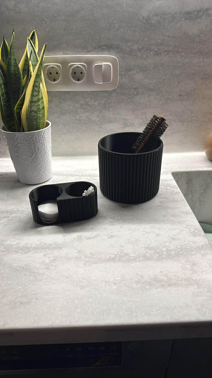 Αναβαθμίστε τον χώρο του μπάνιου σας με αυτό το κομψό και πρακτικό σετ οργάνωσης σε μαύρο ματ χρώμα. Ο μίνιμαλ σχεδιασμός του, με κάθετες ραβδώσεις, προσφέρει μοντέρνα αισθητική που ταιριάζει απόλυτα σε σύγχρονα και industrial μπάνια.